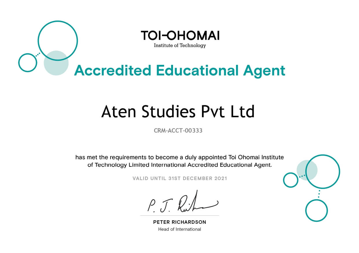 After completing my senior secondary schooling, I wanted to study Civil Engineering at a good and reputed institution. For this, I was referred by a friend to Aten Studies who gave me excellent options and guidance to pursue this course. Finally I got my offer letter for NorthTec, New Zealand through them. They also handled the processing of my application and finally I got my visa approval to study in NorthTec. All their services were free of cost.